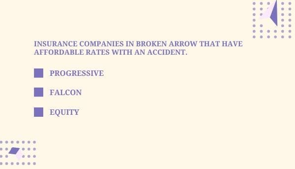Here are a few insurance companies in Broken Arrow that offer affordable insurance coverage with an accident: