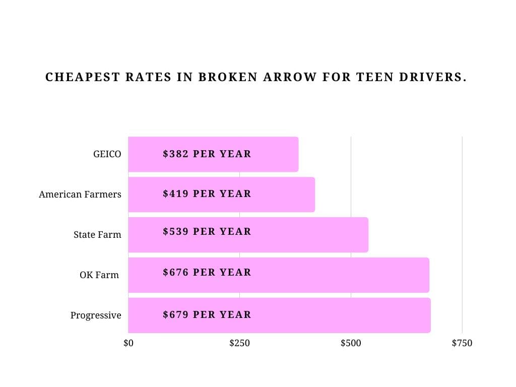 Here are the cheapest rates you can find for good teen drivers in Broken Arrow: