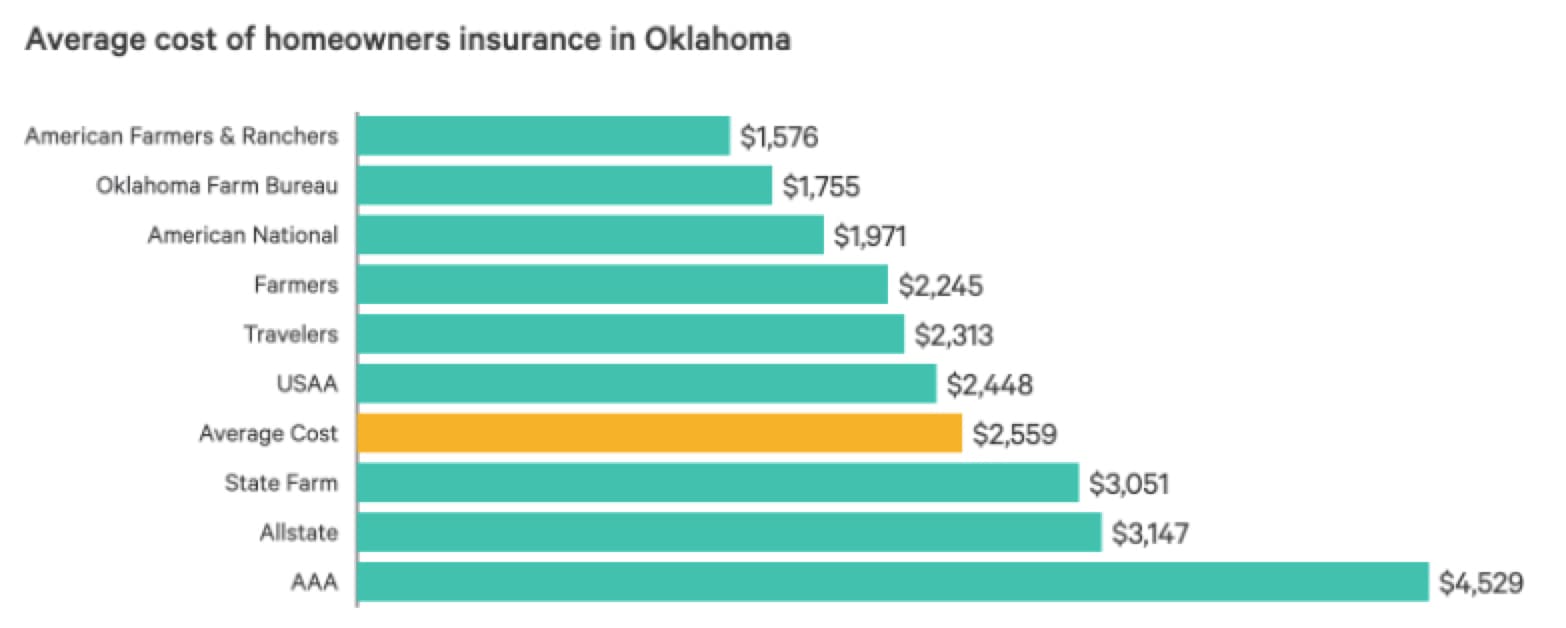Thunderstorms, hail, wind, and tornados are common in the area, which means there are quite a lot of weather-related claims driving up the cost of insurance. You’ll find the most expensive rates in the state in Oklahoma City with an average of $3,049. Broken Arrow has rates around $2,219 on average. You can save money by bundling home and auto insurance together.