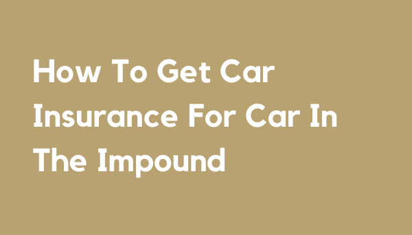How To Get Car Insurance For Car In The Impound